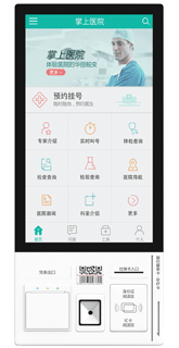 設(shè)備主要用于醫(yī)療場(chǎng)景的綜合自助終端機(jī),用于自助建檔發(fā)卡、查詢(xún)、繳費(fèi) 、掛號(hào)等,屏幕采用43寸高清電容屏,美觀大氣,大小型醫(yī)院常用款式